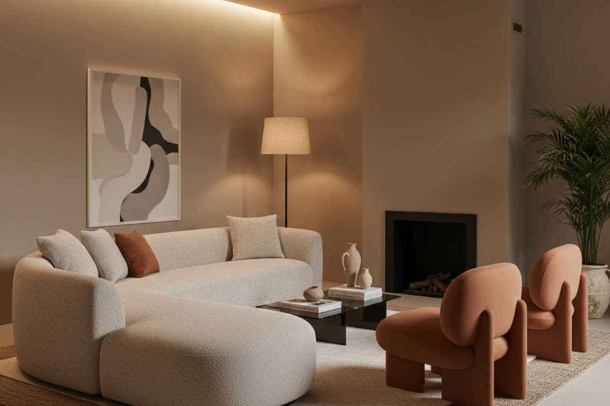 2. Curved and Sculptural Sofas — Soft Lines, Bold Statement
