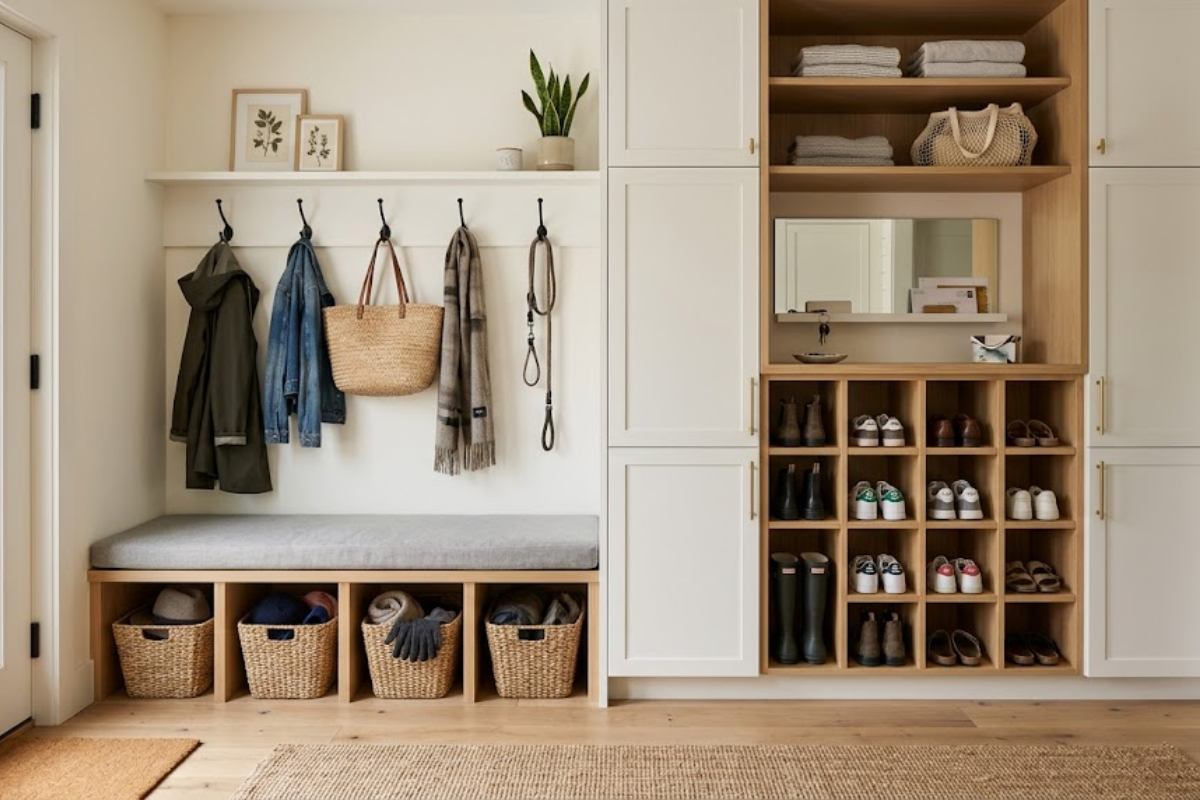 A well-designed mudroom supports daily routines.